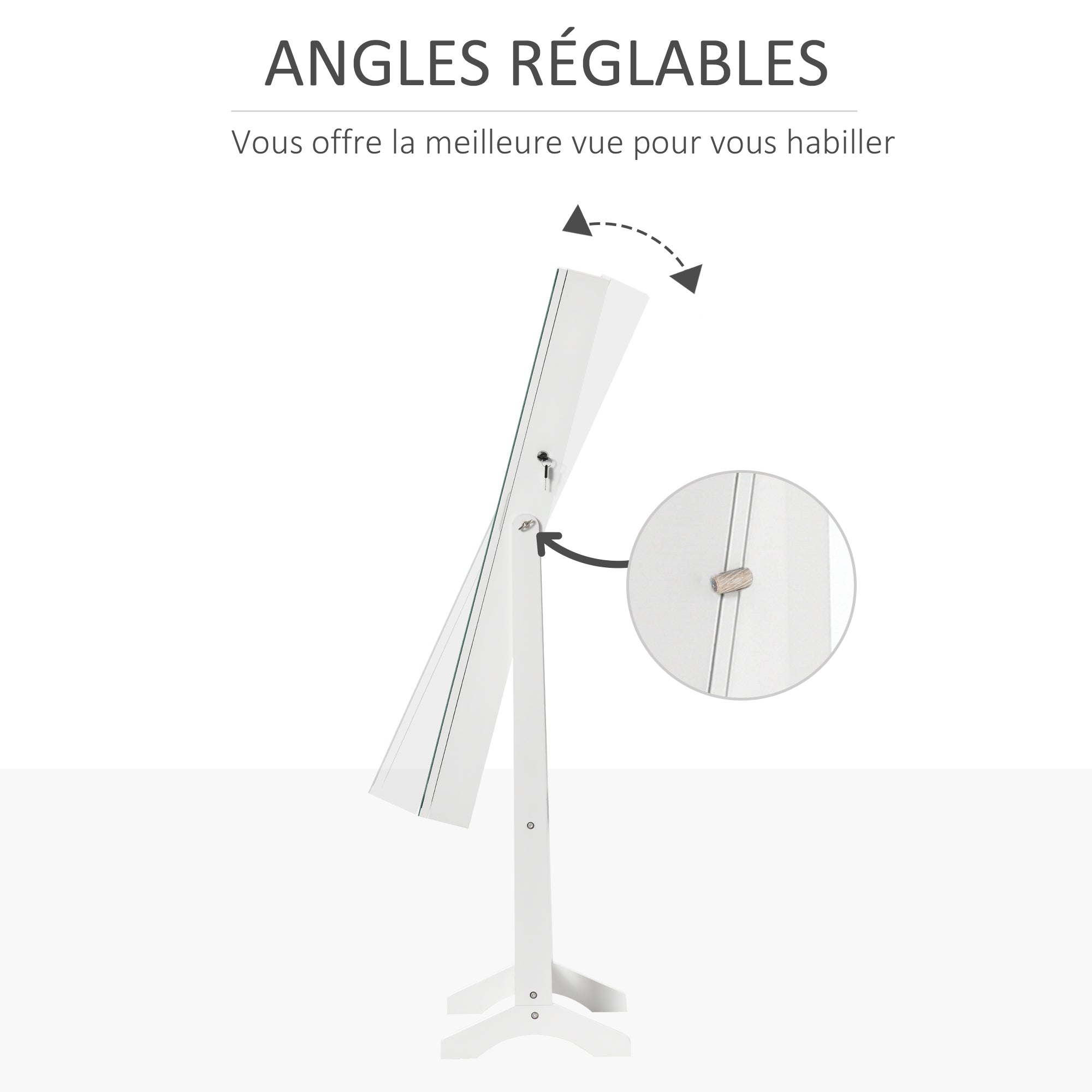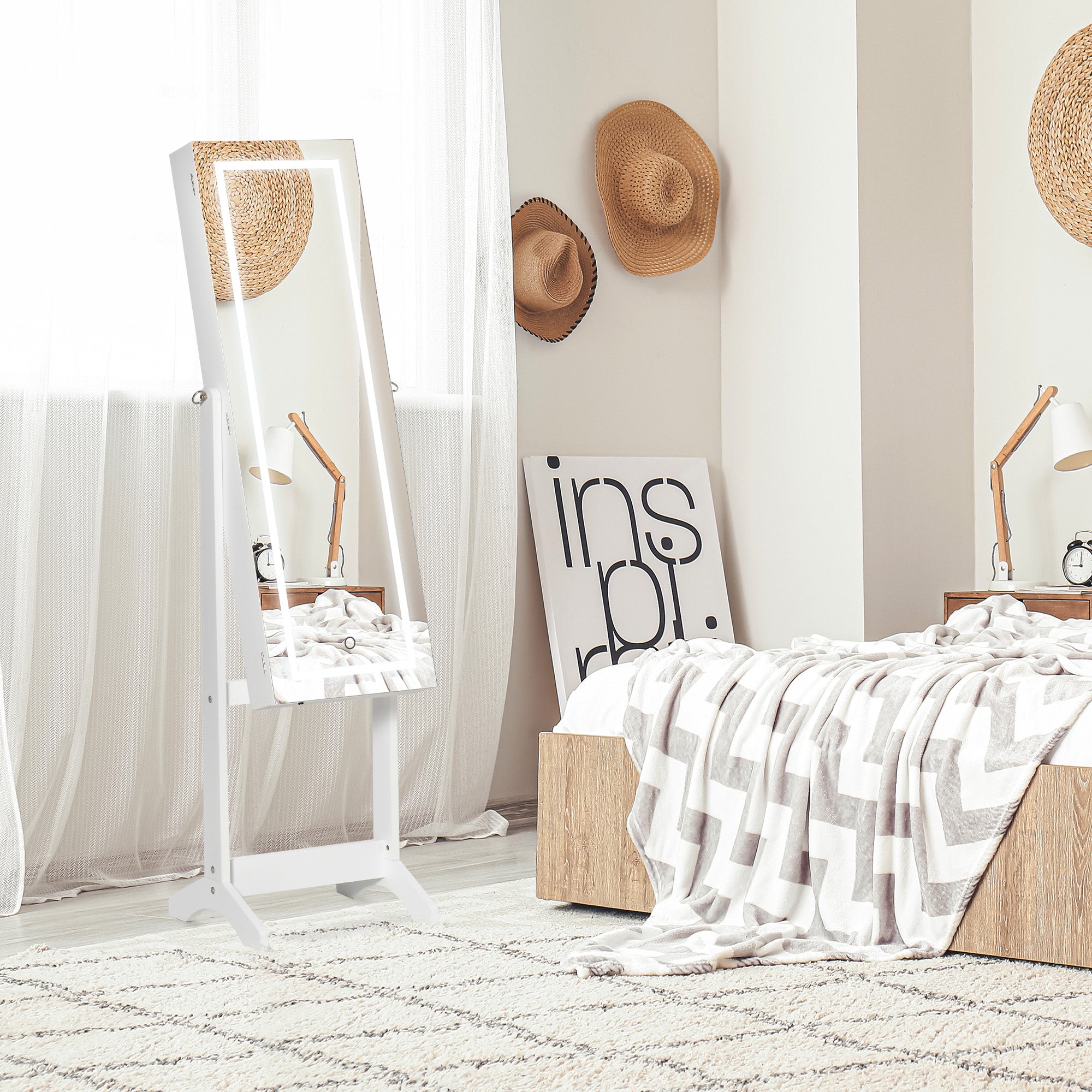 Armoire à bijoux LED avec miroir sur pied range bijoux avec éclairage à écran tactile blanc