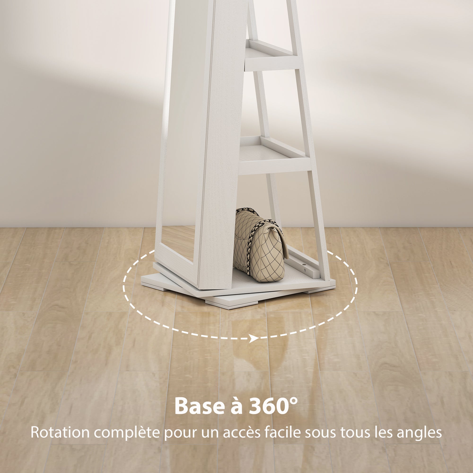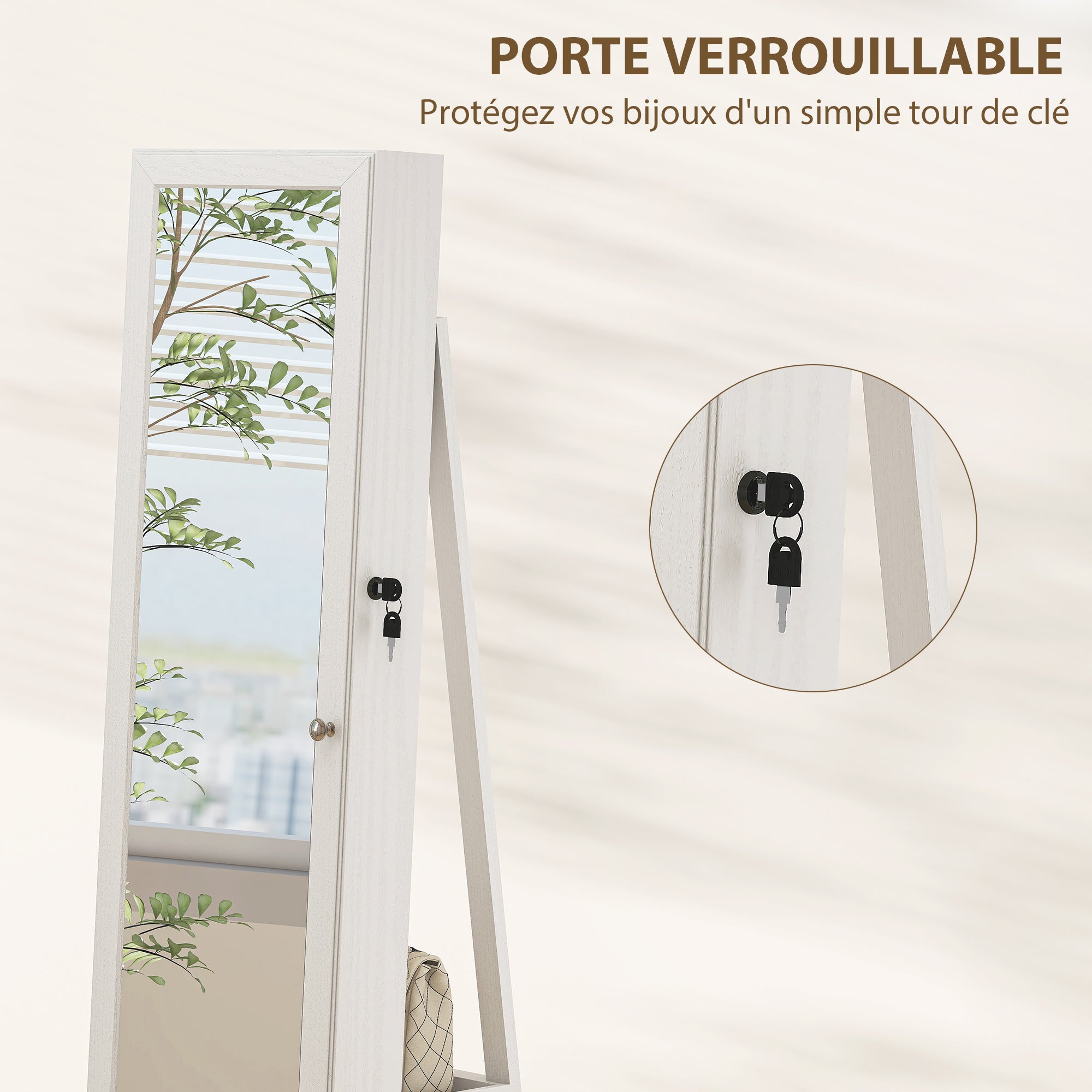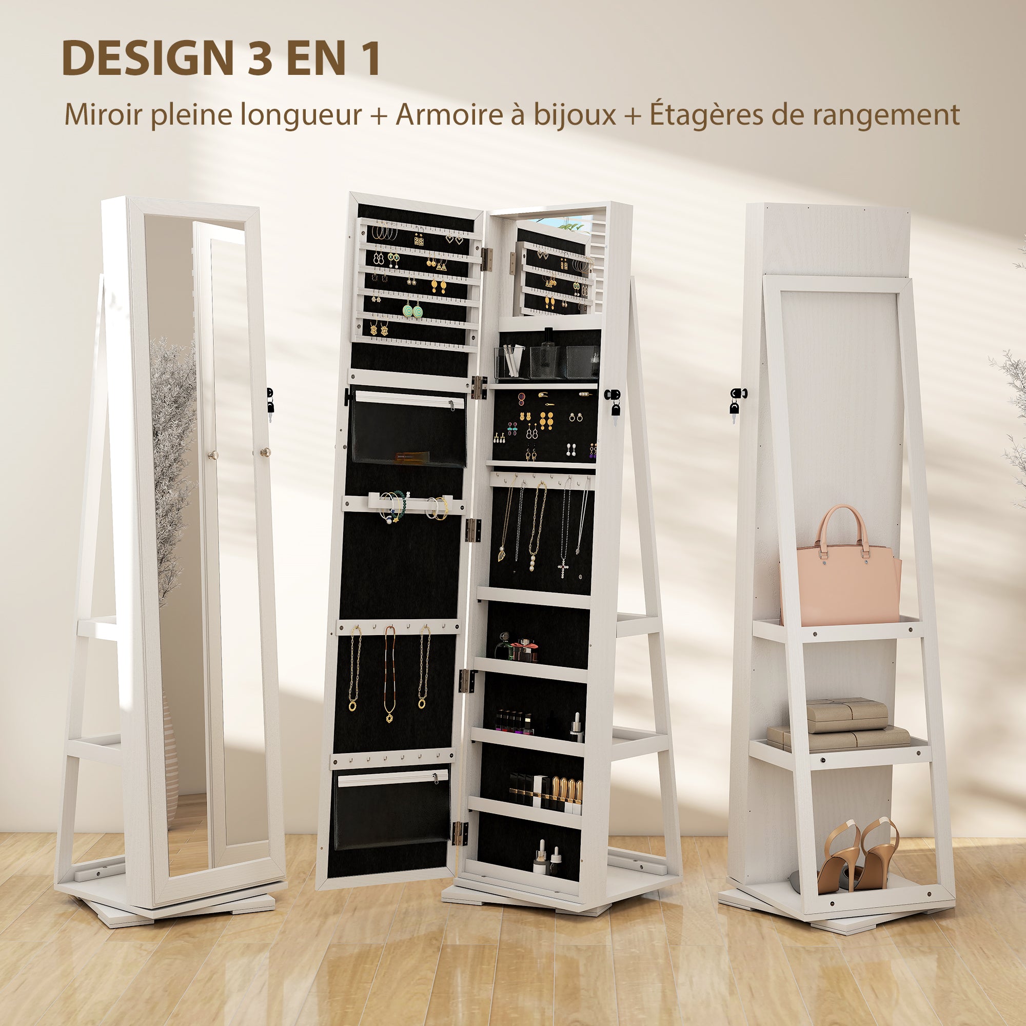 Armoire à Bijoux pivotante verrouillable boîte à bijoux avec Miroir - Armoire Bijoux Multi-Rangement - en Bois Blanc