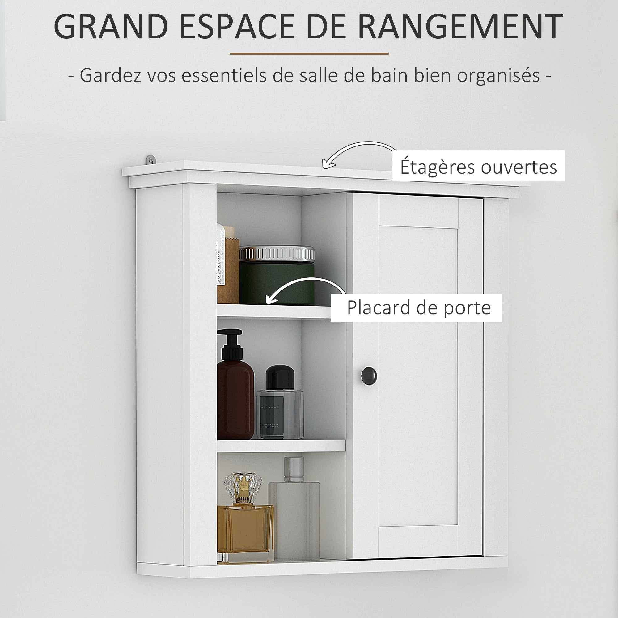 Armoire Murale de Salle de Bain Meuble Suspendu WC Placard 1 Porte 3 niches dim. 53L x 14,5l x 50,5H cm en bois Blanc