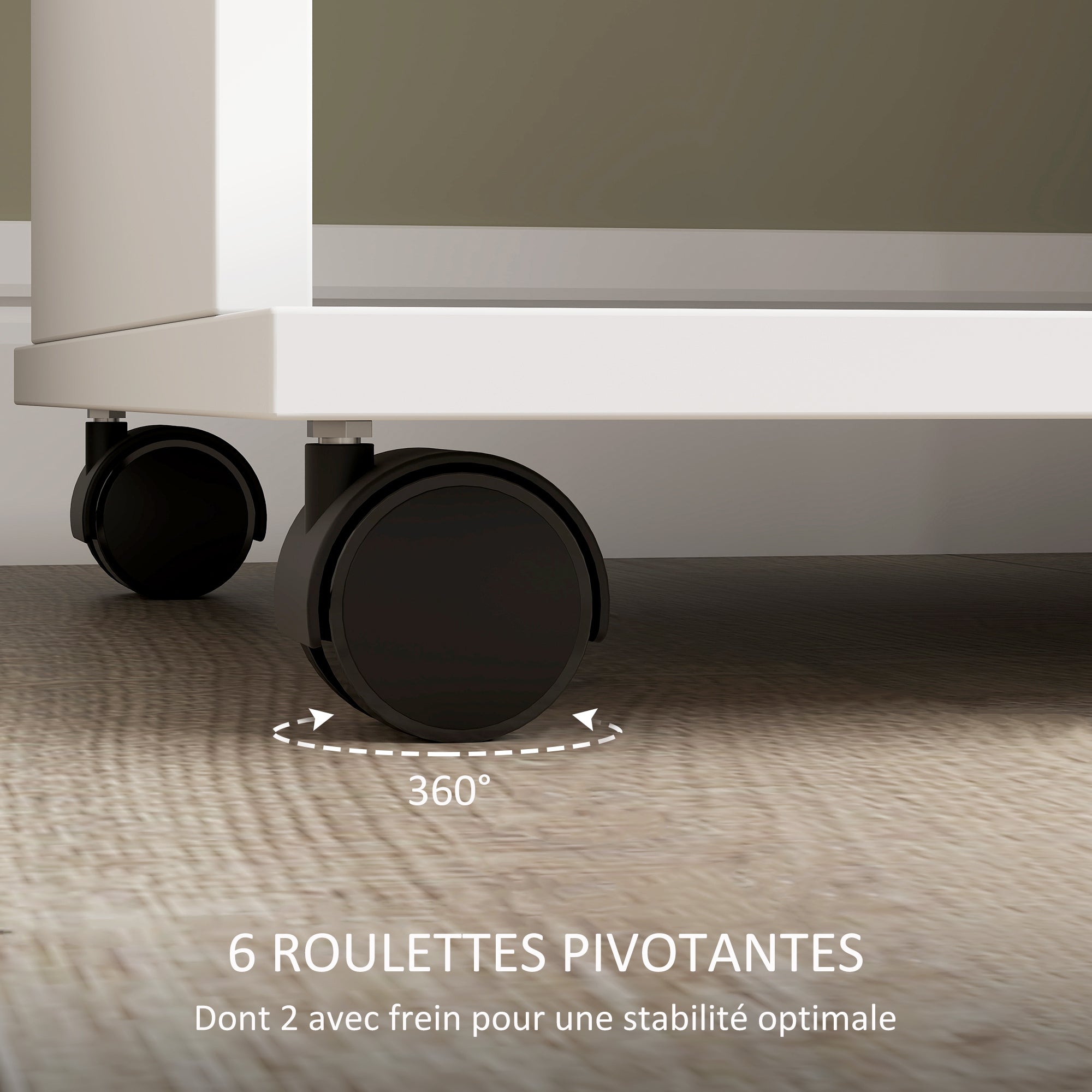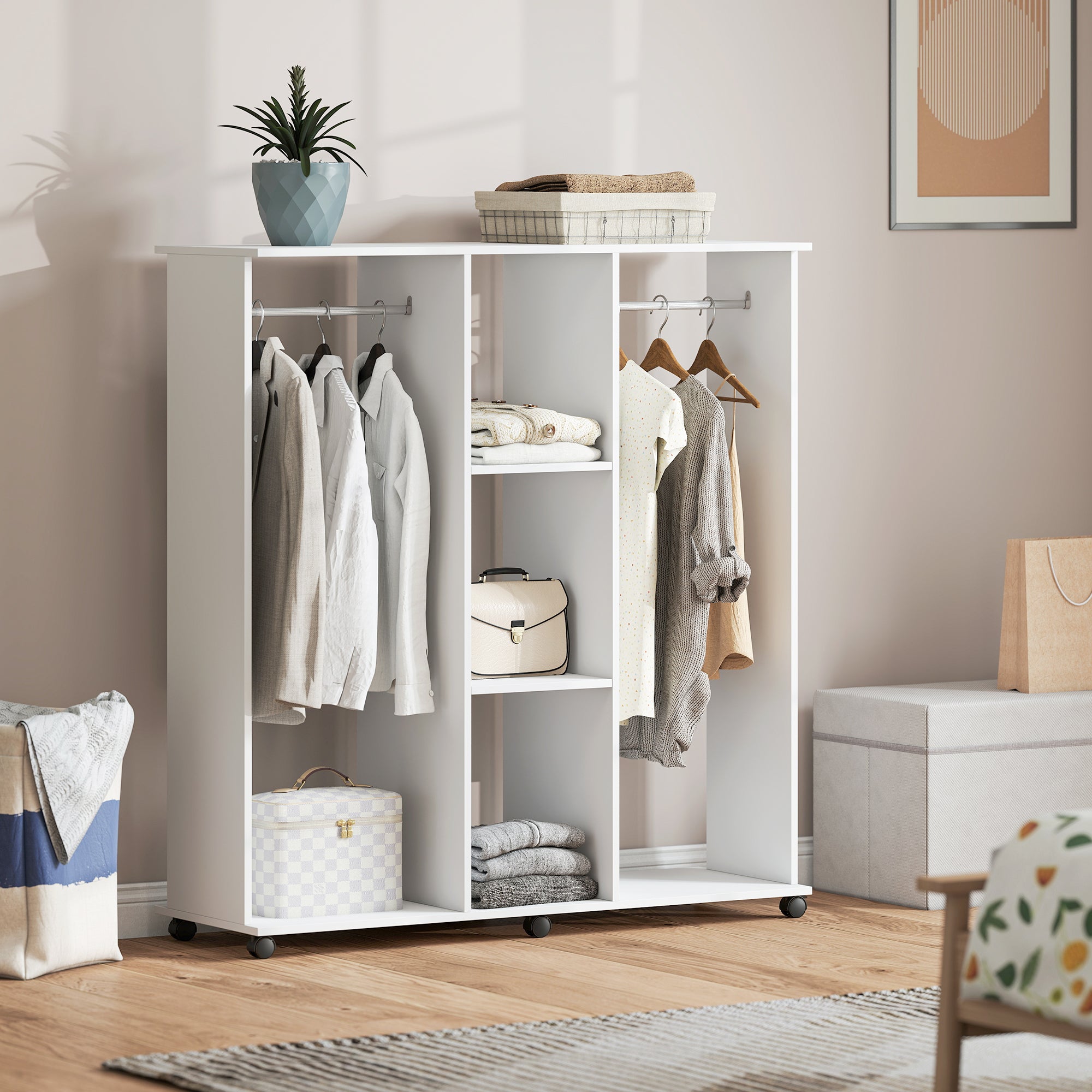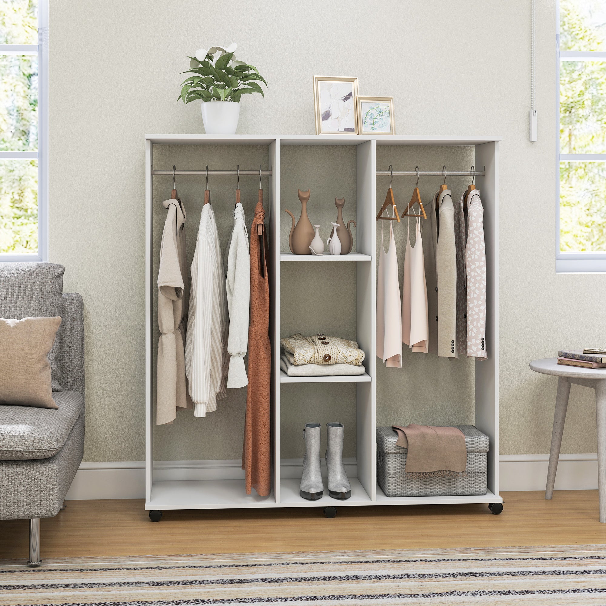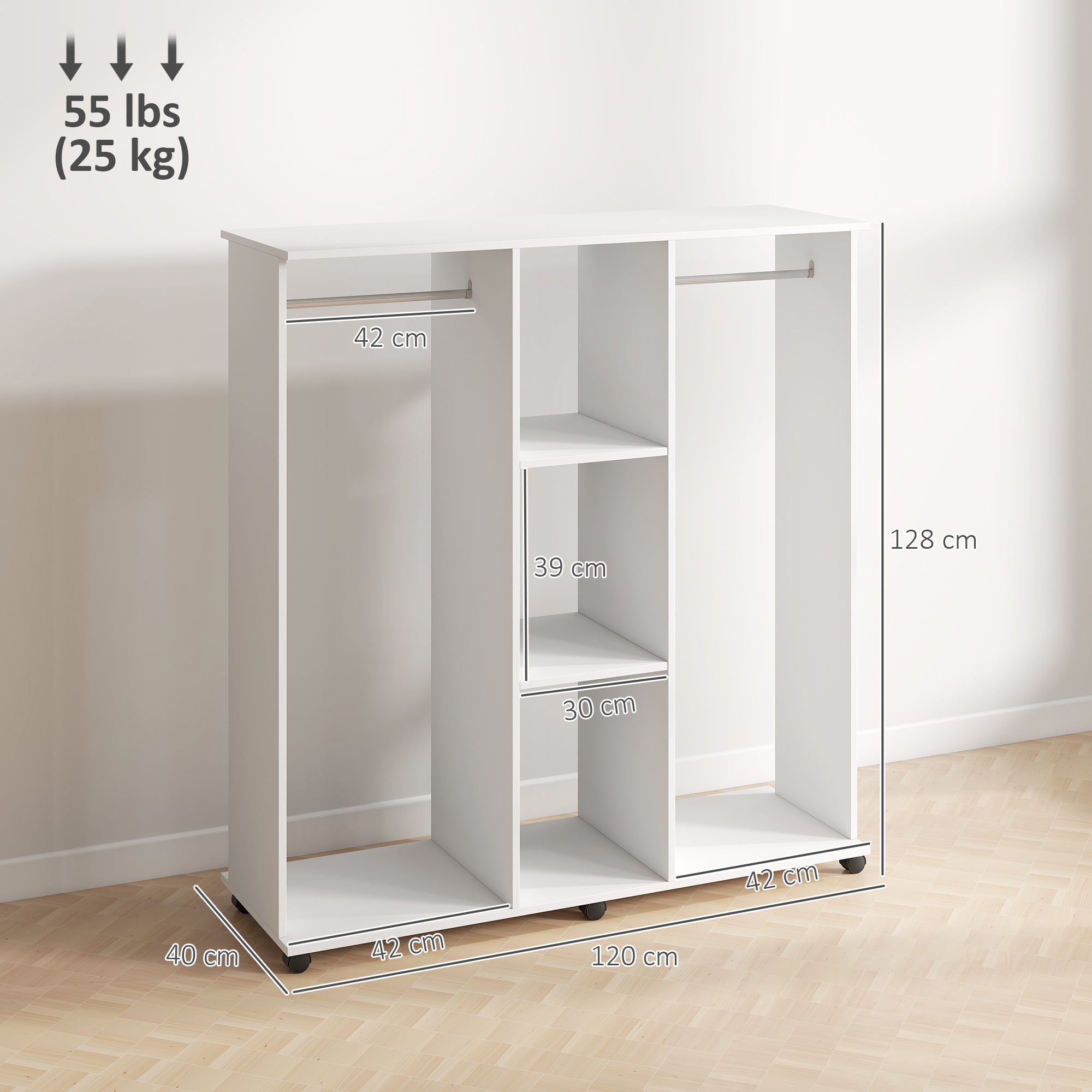 Armoire penderie Meuble de Rangement Mobile 6 roulettes 120L x 40l x 128H cm en bois Blanc
