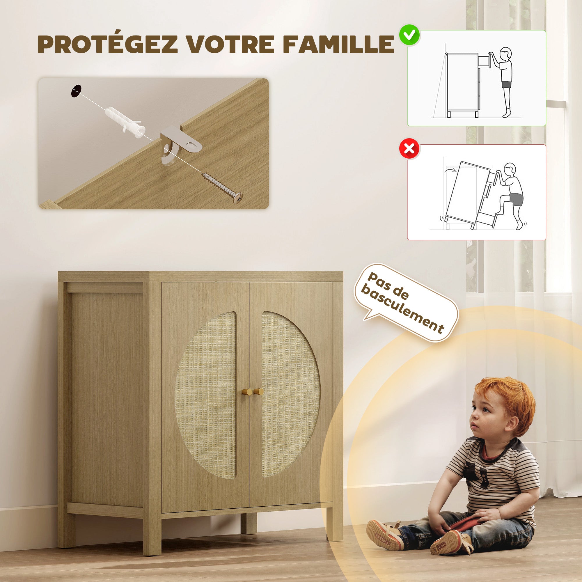 Buffet salon, meuble de rangement avec 2 portes effet rotin et étagère réglable, style bohème, pour salle à manger et cuisine, 75 x 38 x 77 cm, bois naturel