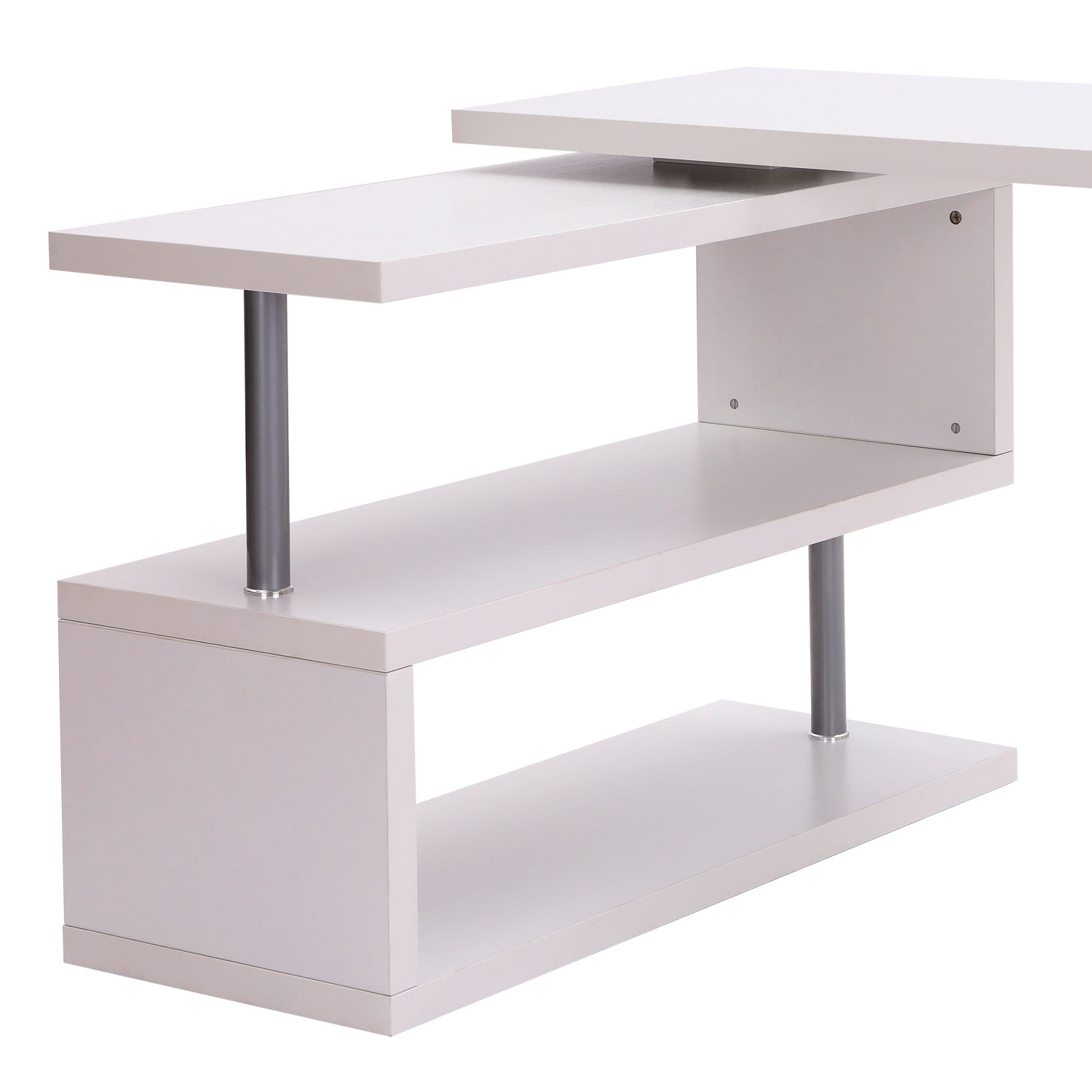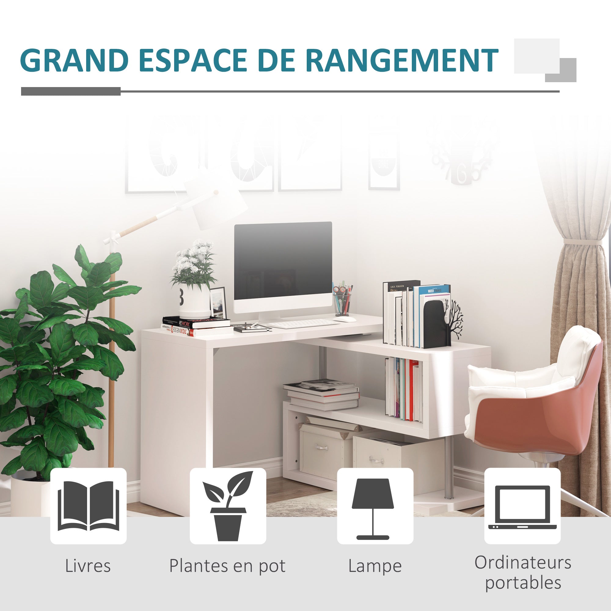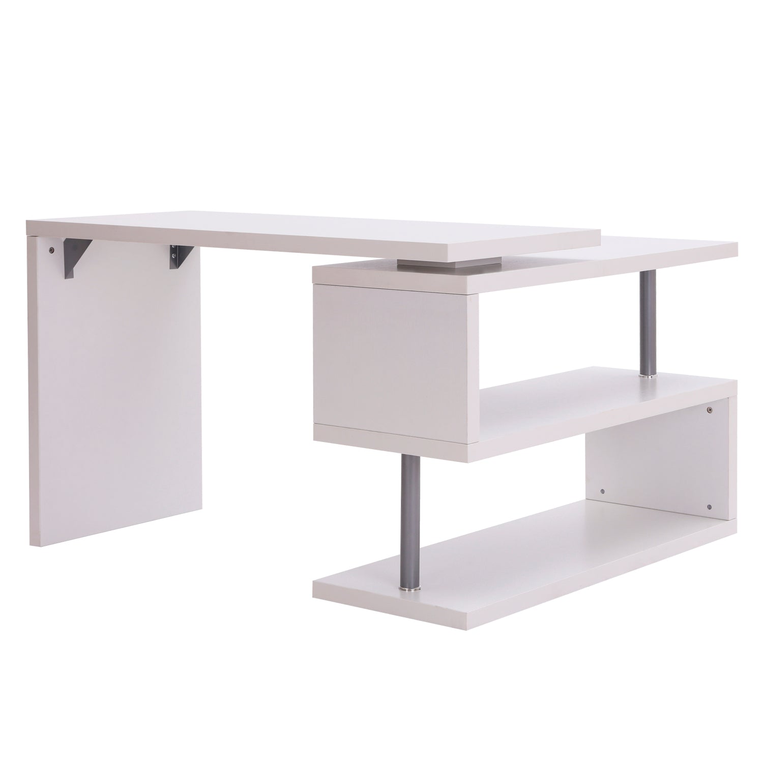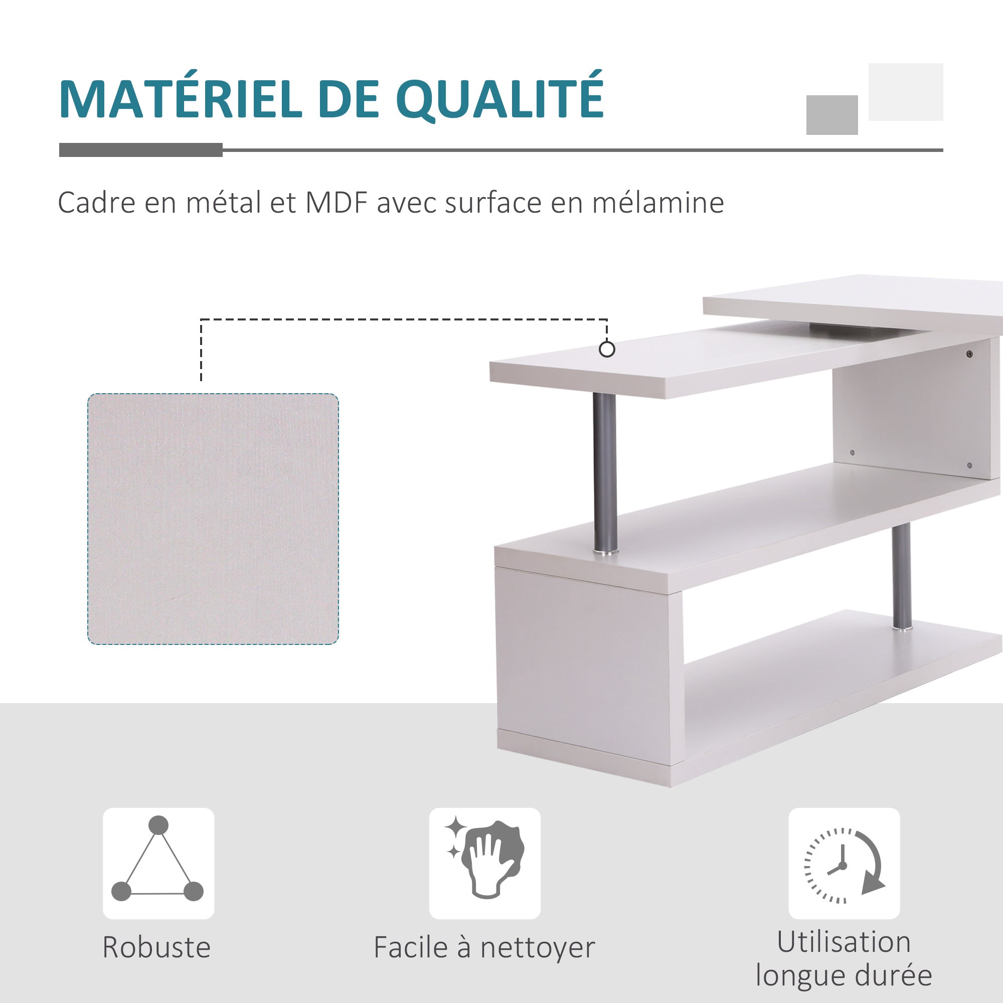 Bureau informatique table informatique table de salle à manger modulable avec bibliothèque adjacente design contemporain mélaminé métal chromé blanc