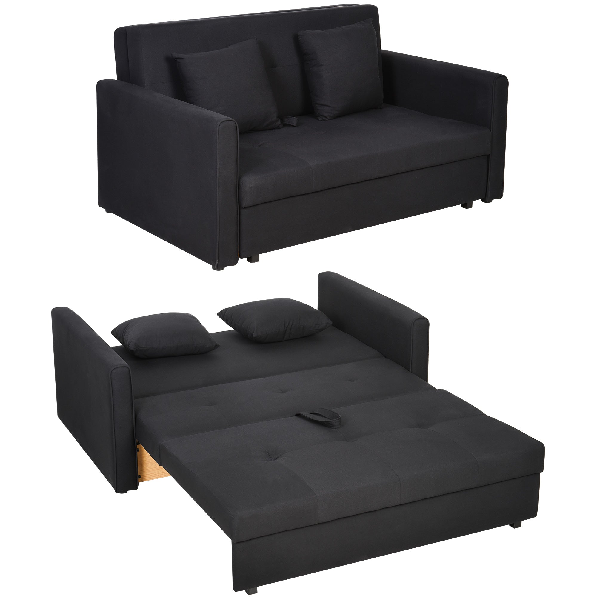 Canapé convertible 2 places 2 en 1, canapé-lit avec 2 coussins inclus et coffre de rangement intégré, tissu en coton, pour salon, chambre d'amis, petit espace, gris foncé