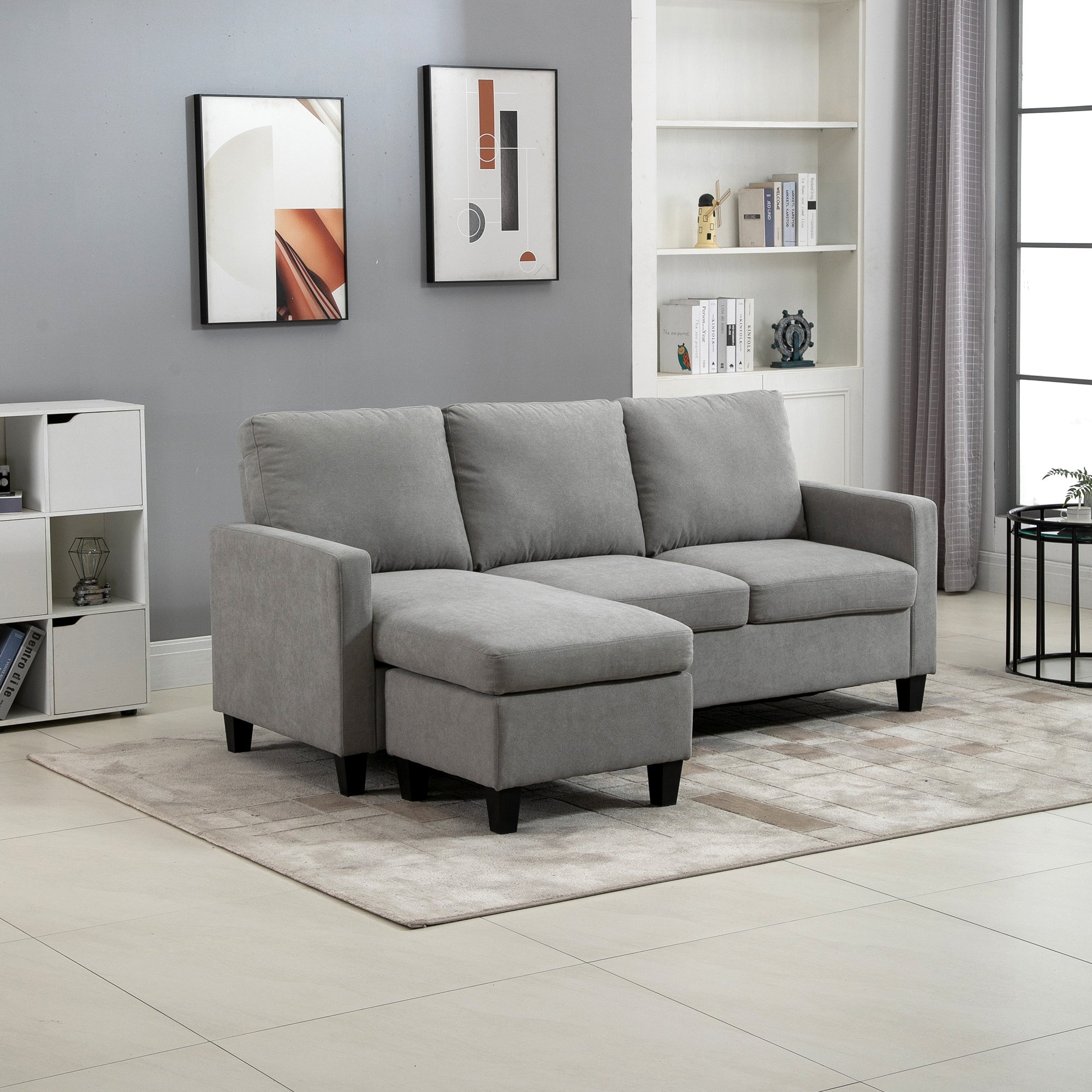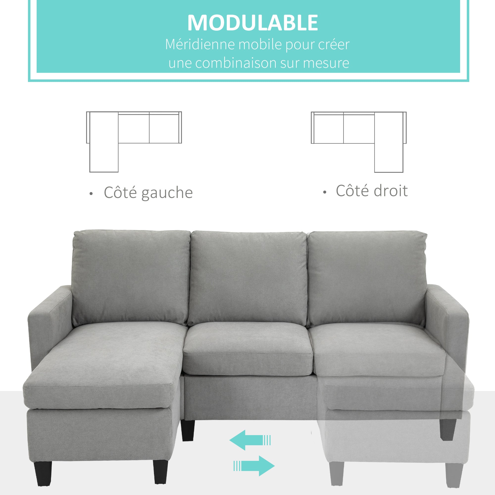 Canapé d'angle canapé 3 places avec méridienne réversible gauche ou droite pour salon, bureau, appartement, tissu polyester 197L x 139l x 91H cm gris clair