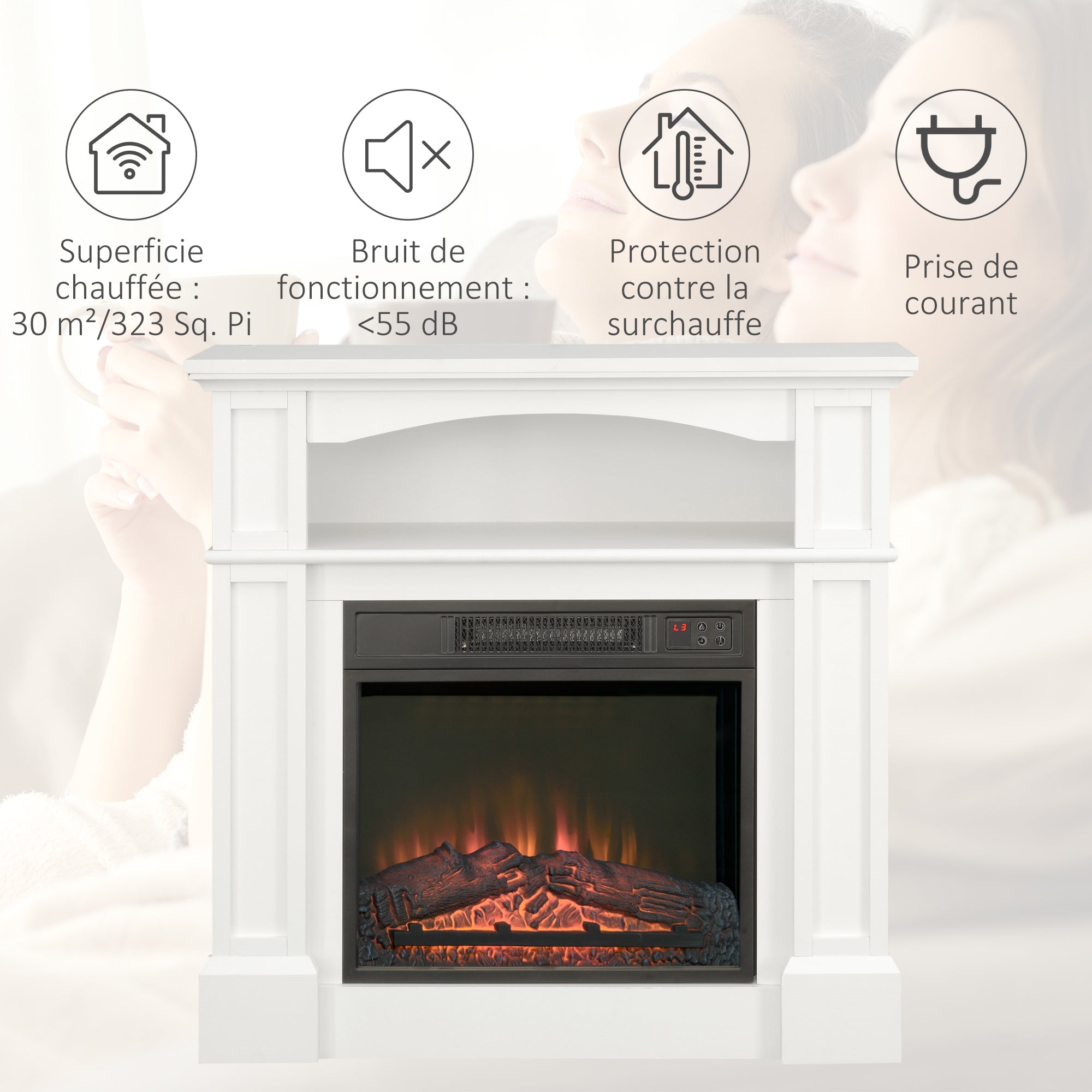 Cheminée électrique effet flammes LED luminosité réglable avec télécommande - 1800 W - 80,5 x 32,3 x 80,5 cm