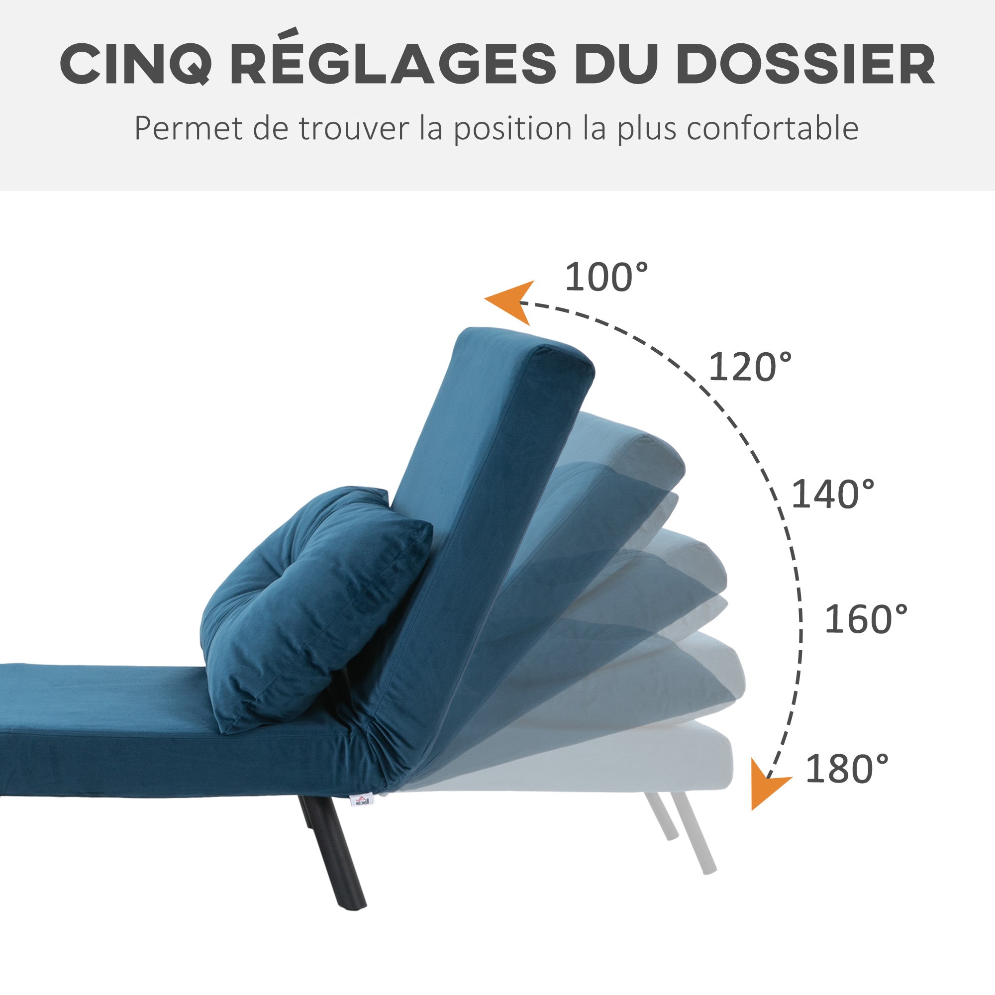 Fauteuil convertible 1 place chauffeuse 4 en 1 canapé convertible fauteuil lit avec dossier réglable en 5 positions, coussin inclus, canapé-lit 1 place pour invités, salon, charge 120 kg bleu