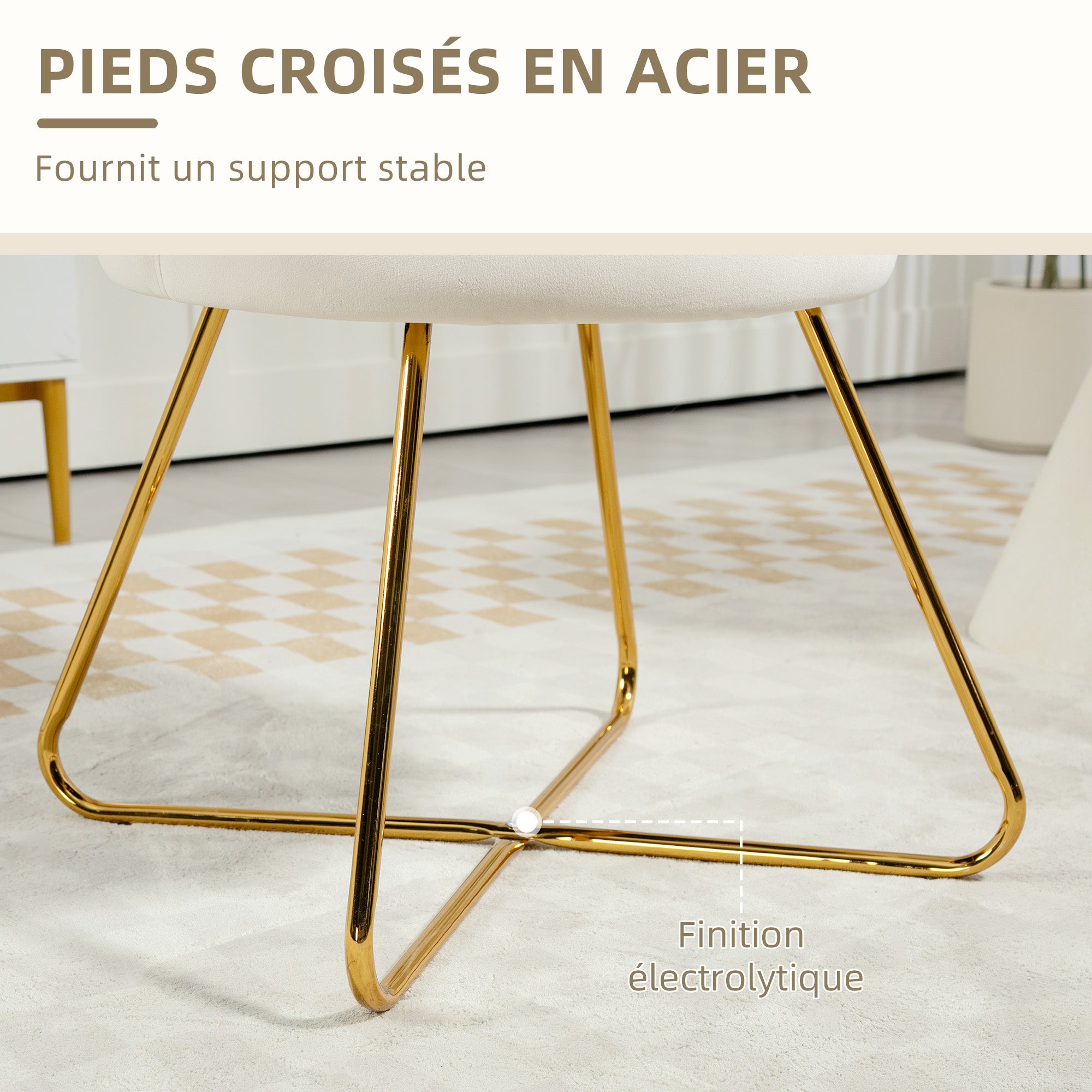 Fauteuil coquillage chaise coiffeuse fauteuil en velours fauteuil de salon avec pieds en acier pour salon et chambre 69 x 64 x 80 cm crème