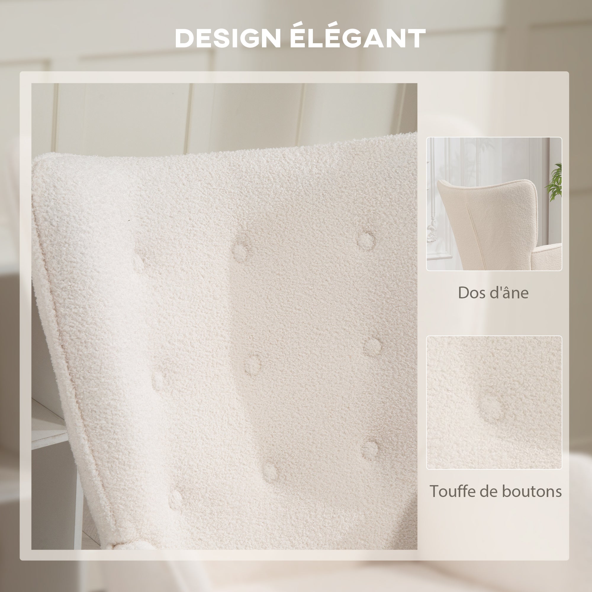Fauteuil de salon en tissu bouclette, fauteuil moderne, capitonné et rembourré avec pieds en bois, accoudoirs et dossier ergonomique, pour salle à manger, salon, chambre, bureau, beige