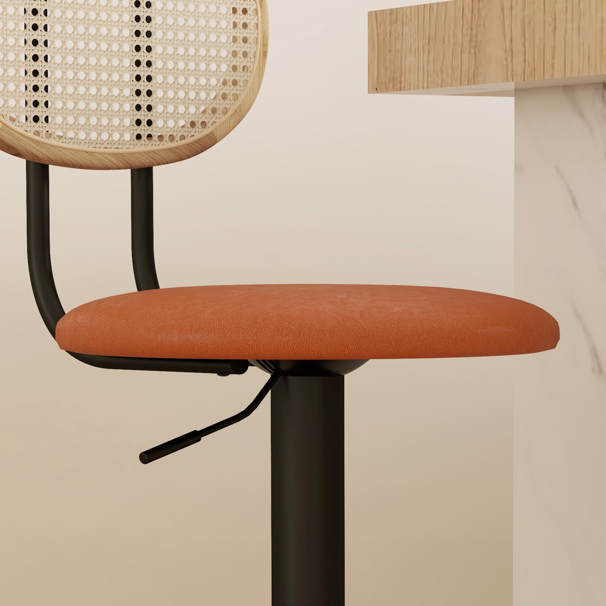 Lot de 2 tabourets de bar chaises de bar hauteur réglable avec dossier en rotin et repose-pieds, tabouret haut moderne, structure bois revêtement synthétique marron