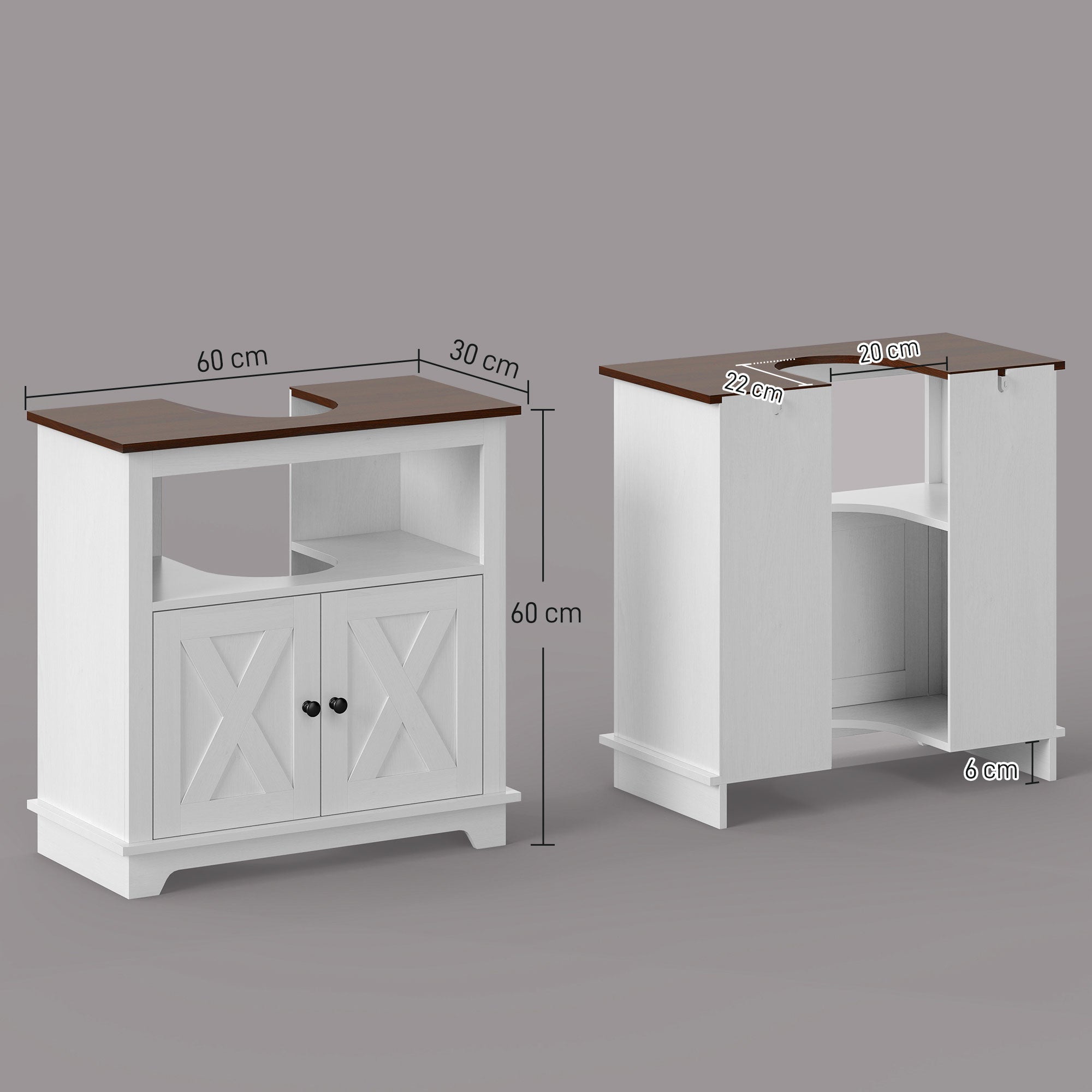 Meuble sous lavabo salle de bain meuble sous vasque armoire de rangement pour lavabo - niche et placard à portes doubles, 60 x 30 x 60 cm, blanc