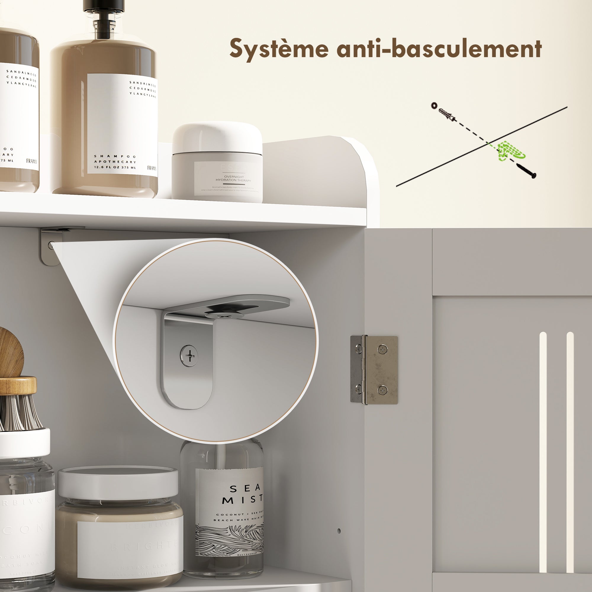 Meuble WC dessus de toilette/machine à laver avec placard à porte double, étagère réglable, meuble toilettes WC rangement armoire salle de bain avec niches et porte-papier, 80x19,5x170cm, blanc
