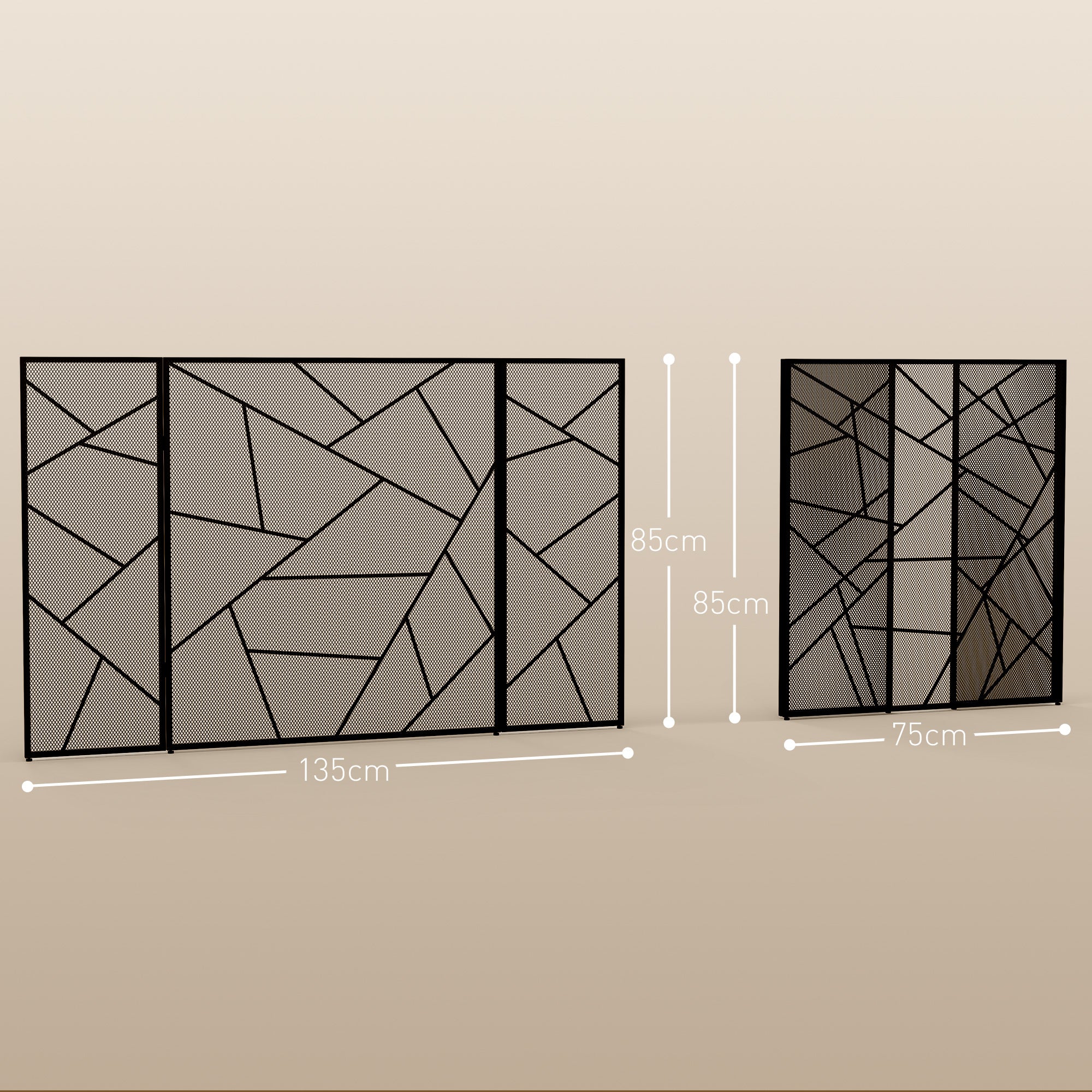 Pare feu cheminée pliable 3 panneaux, pare-étincelles cheminée, grille de protection cheminée en maille d'acier avec décor géométrique et pieds antidérapants, 135l x 1,2P x 85H cm, noir