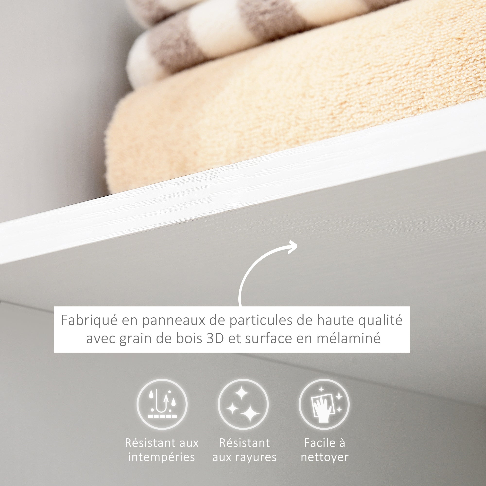 Portant à vêtements penderie Mobile avec roulettes 3 étagères latérales + Grand Espace penderie Panneaux Particules Blanc