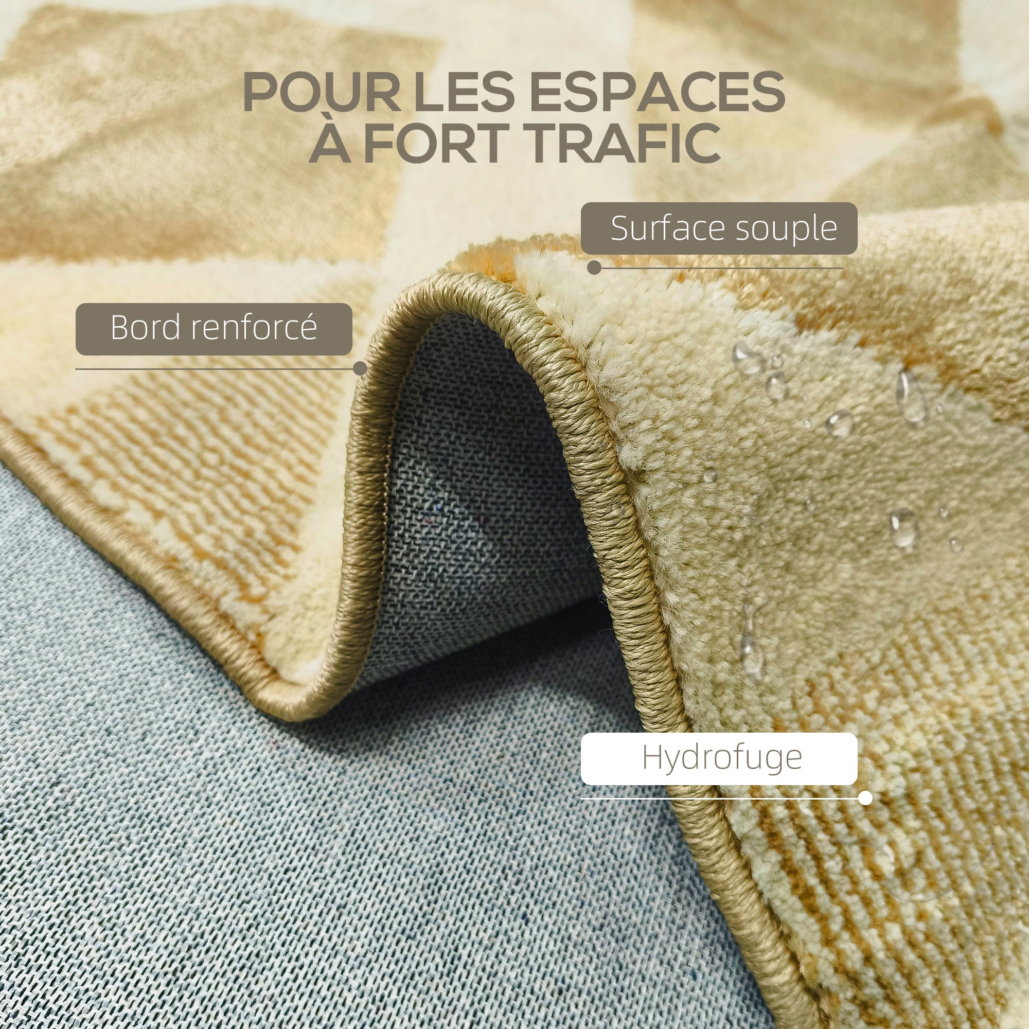 Tapis salon 170 x 120 cm tapis à poils courts, lavable en machine, hypoallergénique, pour salon, chambre à coucher, bureau, jaune